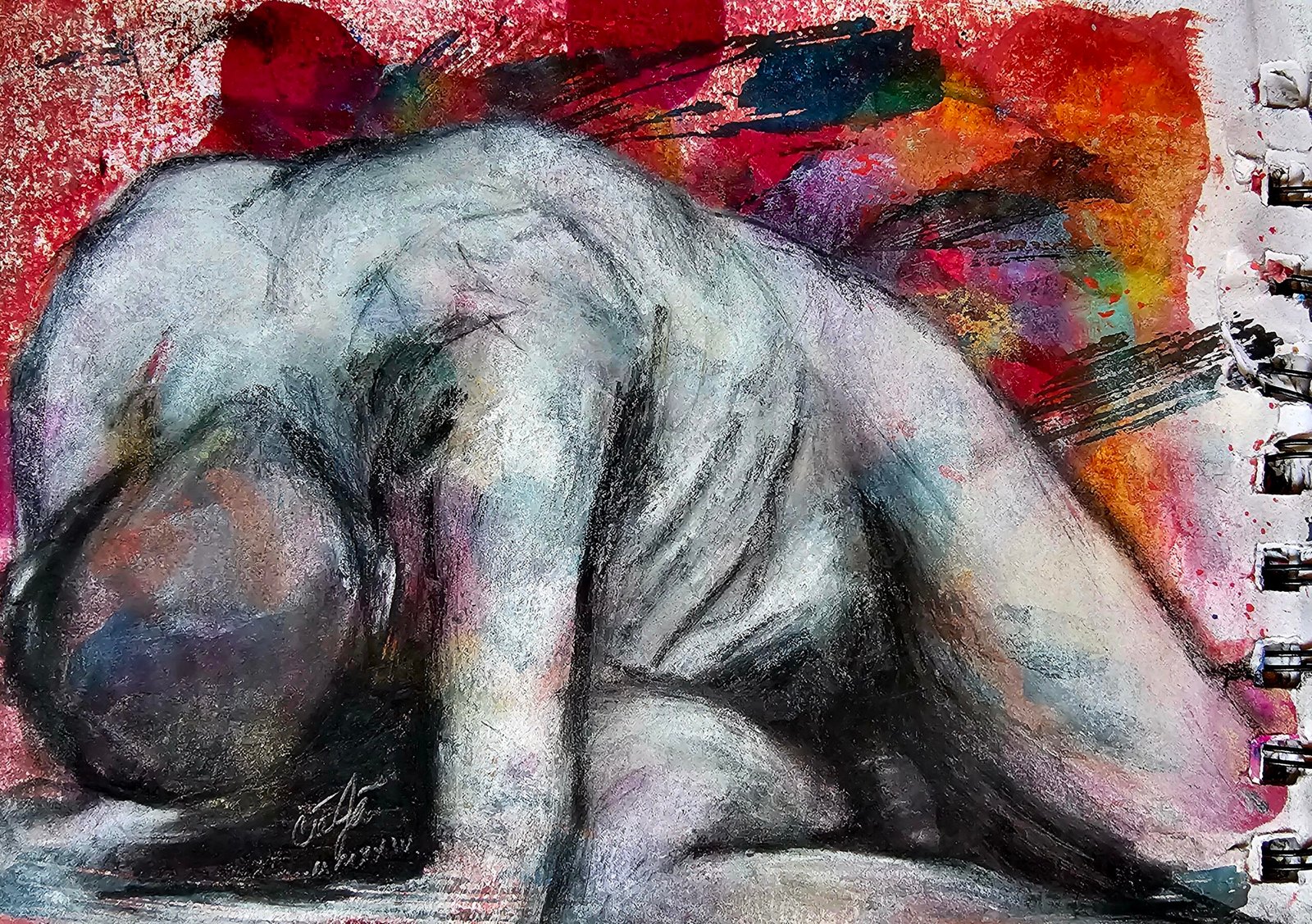 4 × 6 drawing 80lb is one of the sketchbooks for my earlier work with life drawing.  The images here vary in a mixture of mediums from graphite, pastel, compressed chalk, vine charcoal, and watercolor.  This sketchbook has been completed and is open to collage.
